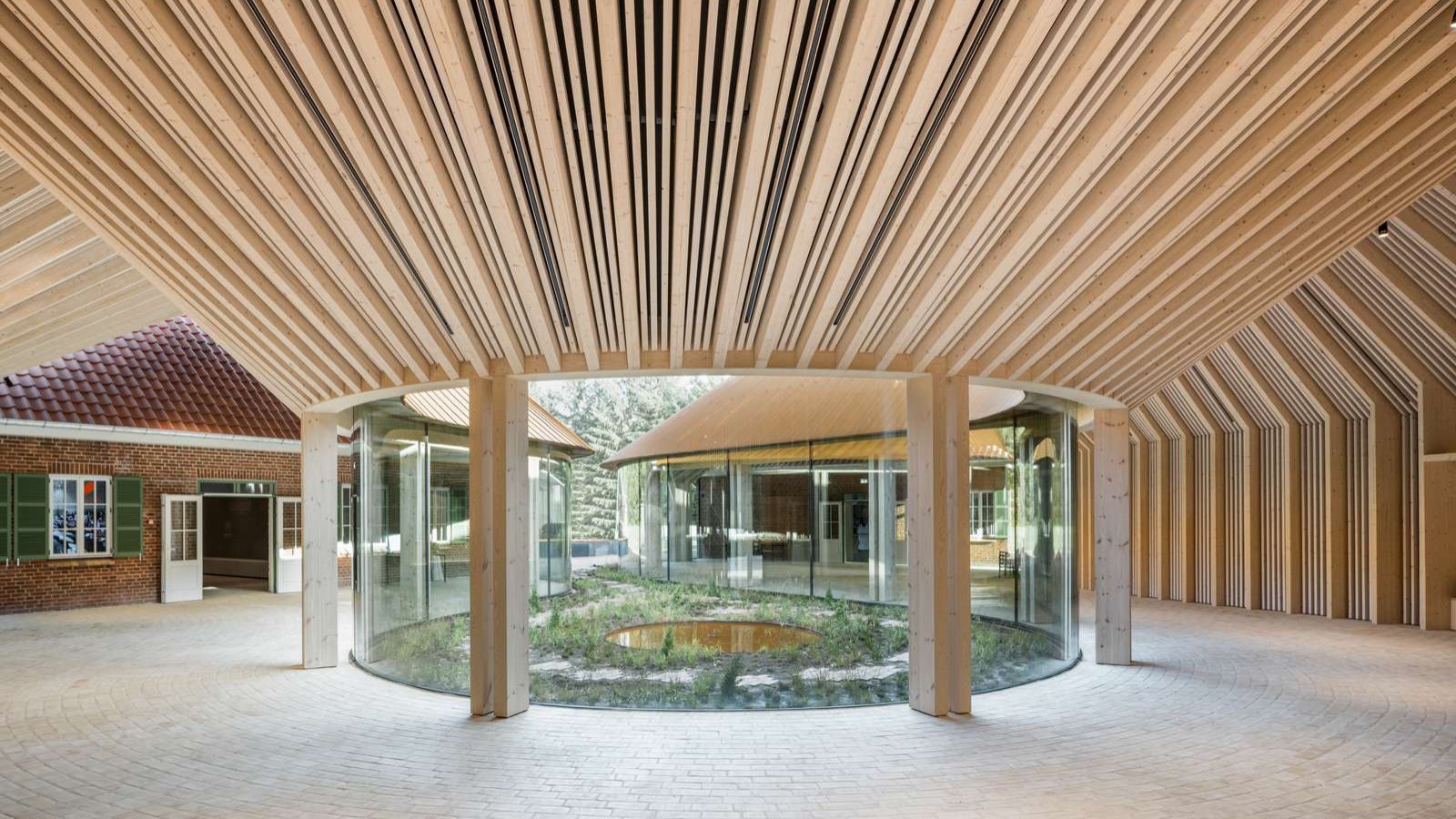 Un bâtiment circulaire de 500 mètres carrés relie les deux ailes et crée un contraste entre lʼancien et le nouveau. «Nous avons créé un espace architectural qui jette un pont entre le passé et le présent», explique Bjarke Ingels.
